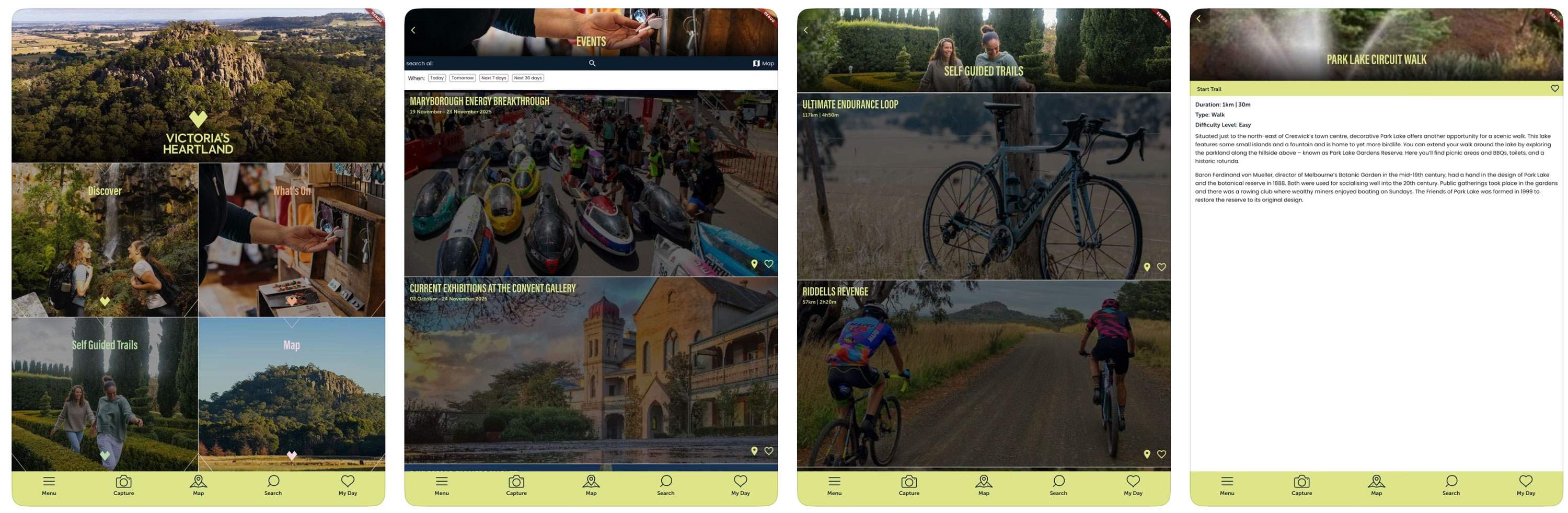 Unleash the explorer in you with the Victoria’s Heartland App! Discover an incredible region spanning from Daylesford to Hepburn Springs, Trentham to Woodend, Mount Macedon to Kyneton in the south, and Castlemaine to Maldon, Talbot to Maryborough in the north – with charming villages and history everywhere in between. A place aplenty!